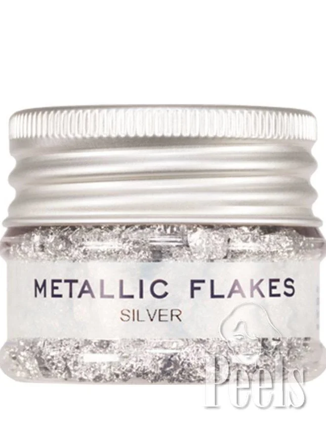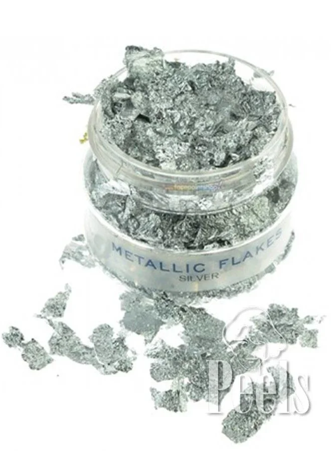 Dunne zilveren metalen vlokken voor decoratieve toepassingen.