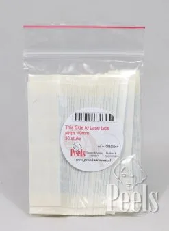 De houdbaarheid van haarwerktape is afhankelijk van temperatuur, vochtigheid en talgproductie. De liner van deze tape is blauw, maar de daadwerkelijke haarwerkstrips zijn transparant.